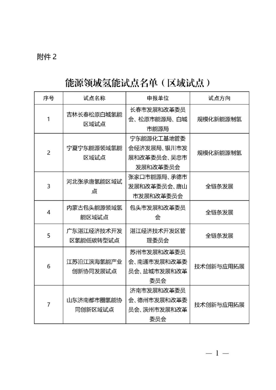 1.能源领域氢能试点名单(项目试点)